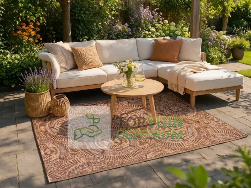 Niets maakt een zithoek buiten zo compleet als een sfeervol kleed. Dit prachtige tuinkleed, uitgevoerd in bruin, camel en ivoor, brengt direct een vleugje mediterrane luxe naar je eigen achtertuin of balkon. Of je nu geniet van een zonnige middag met een boek of een lange zomeravond met vrienden, dit kleed zorgt voor de visuele verbinding die van losse meubels één gezellige loungeplek maakt.