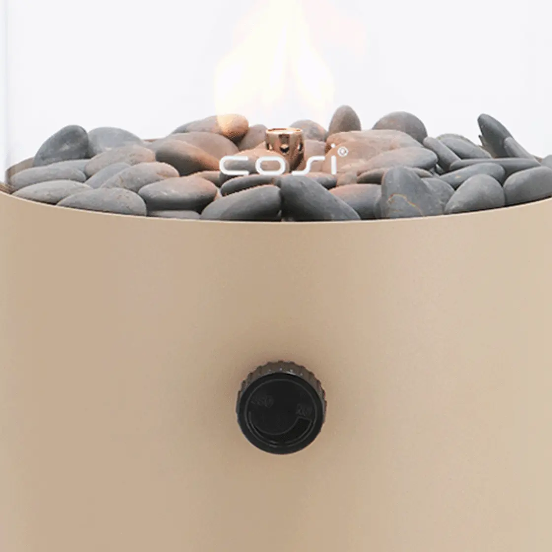 De Cosiscoop XL gaslantaarn sandy beige is de grotere variant van de populaire Original en brengt extra sfeer naar tuin, terras of interieur. Het moderne tafelmodel met draaghendel is eenvoudig te verplaatsen en ideaal voor gezellige avonden met vrienden en familie. De neutrale sandy beige kleur geeft een tijdloze uitstraling en combineert moeiteloos met andere items uit de Cosi-collectie. Gemaakt van stevig gepoedercoat aluminium en voorzien van transparant glas en meegeleverde kiezelstenen, straalt deze XL gaslantaarn luxe en gezelligheid uit.