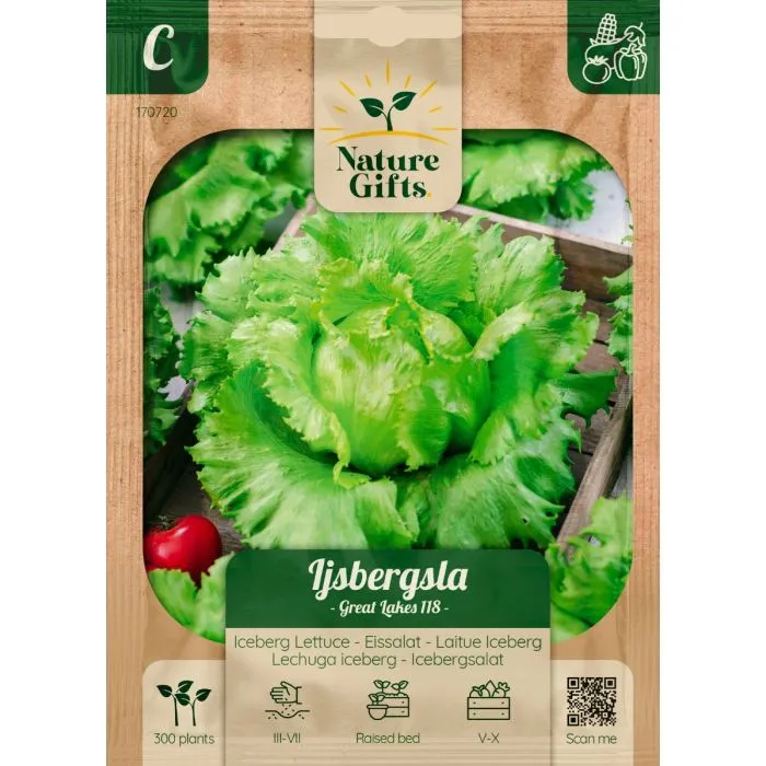 Ijsbergsla Great Lakes 118 is een klassieke keuze voor in de moestuin. Bekend om zijn middelgrote, knapperige, lichtgroene kroppen.