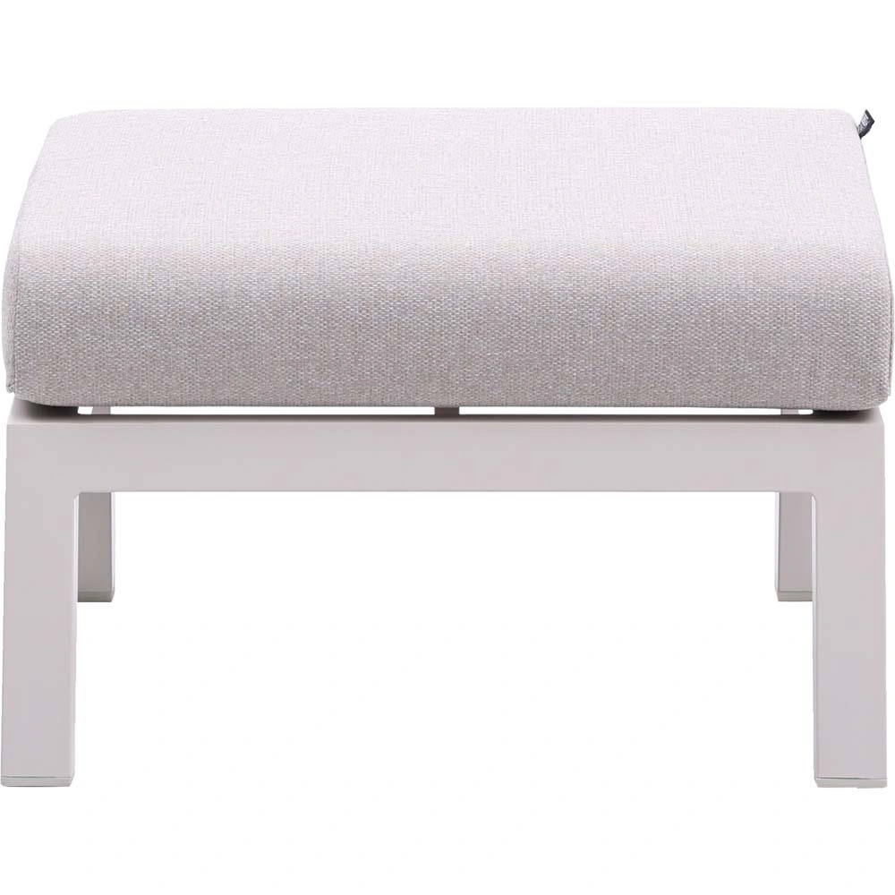 Compacte loungehocker met mat beige aluminium frame en comfortabel, weerbestendig olefin kussen voor jouw loungehoek.