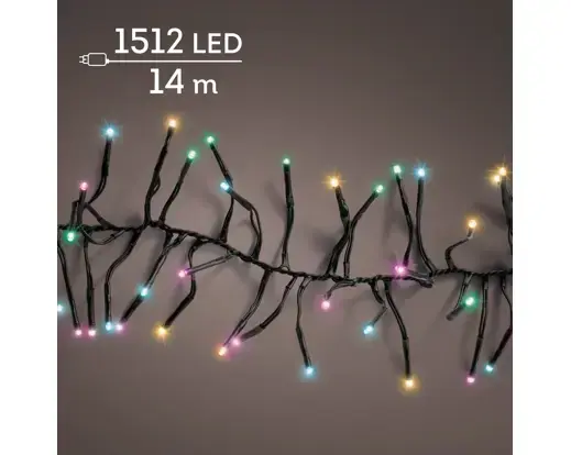 Lumineo cluster verlichting 1512Led 14m zwart/soft multi colour