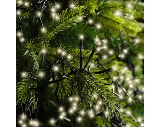 Deze clusterverlichting is ideaal voor diverse toepassingen: versier je kerstboom met een luxe lichtsnoer, omlijn de randen van je huis voor een feestelijke uitstraling, of voeg een gezellige sfeer toe aan je woonkamer door het te gebruiken in guirlandes of kransen. De overvloed aan kleine LED-lampjes zorgt voor een magische en sfeervolle ambiance, terwijl de zwarte kabel discreet opgaat in de achtergrond.