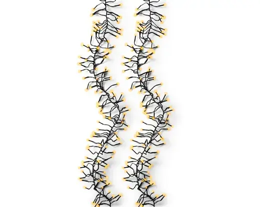 Deze veelzijdige clusterverlichting is niet alleen ideaal voor het verlichten van kerstbomen, maar ook perfect voor het versieren van randen van het huis, het omlijnen van objecten, of het toevoegen van een feestelijke touch aan een guirlande of krans. De zwarte kabel en de klassiek warme lichtkleur creëren een traditionele en gezellige kerstsfeer.