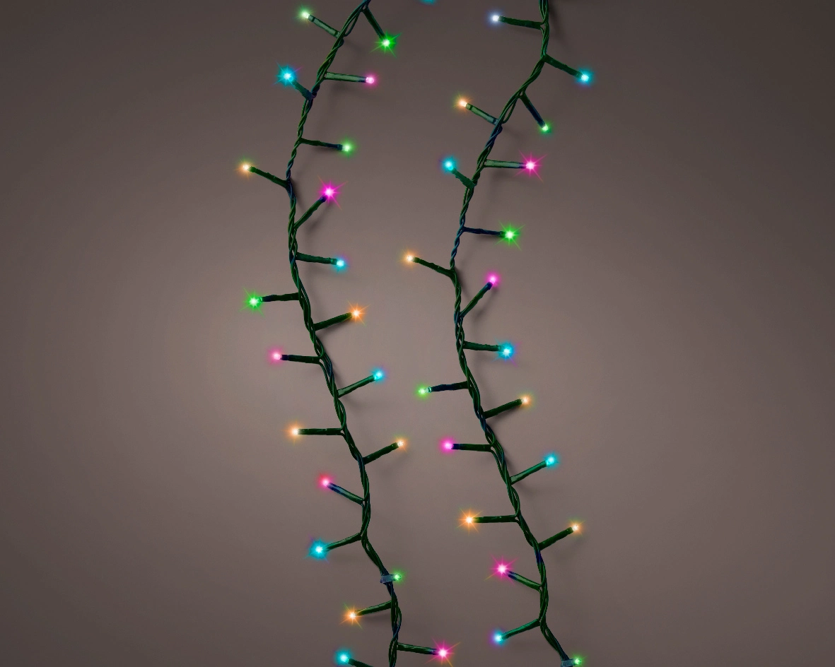 De verlichting beschikt over een groen snoer dat subtiel opgaat in de omgeving, waardoor de focus volledig op de sprankelende, multi-kleurige lampjes ligt. Eenvoudig aan te sluiten met een stekker, deze verlichting biedt extra gemak met een timerfunctie, een twinkle-effect en 8 verschillende lichtfuncties om de gewenste sfeer te creëren.