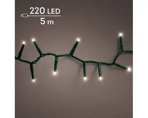 De lichtjes verspreiden een Warm wit gloed, perfect voor het toevoegen van een gezellige sfeer aan je kerstdecoratie. Dankzij de robuuste kwaliteit en de mogelijkheid om het snoer zowel binnen als buiten te gebruiken, is deze verlichting een veelzijdige keuze voor elk kerstproject. Het snoer is zwart, wat zorgt voor een strakke en moderne uitstraling, terwijl de 220 LED-lampjes een heldere, warme verlichting bieden.