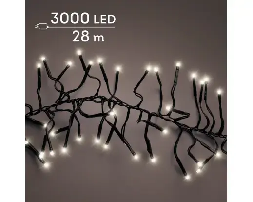Breng een warme en betoverende sfeer naar je kerstdecoraties met de Lumineo LED Clusterverlichting. Deze indrukwekkende clusterverlichting van 28 meter met maar liefst 3000 LED-lampjes zorgt voor een schitterende en rijke uitstraling, perfect voor het verlichten van je kerstboom of het decoreren van je huis en tuin.