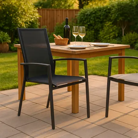 De zitting en rugleuning zijn uitgevoerd in 2x1 textilene, een ademend en weerbestendig materiaal dat prettig aanvoelt en zich goed aanpast aan het lichaam. Dankzij de verstelbare rugleuning stelt u eenvoudig de gewenste zit- of relaxpositie in.