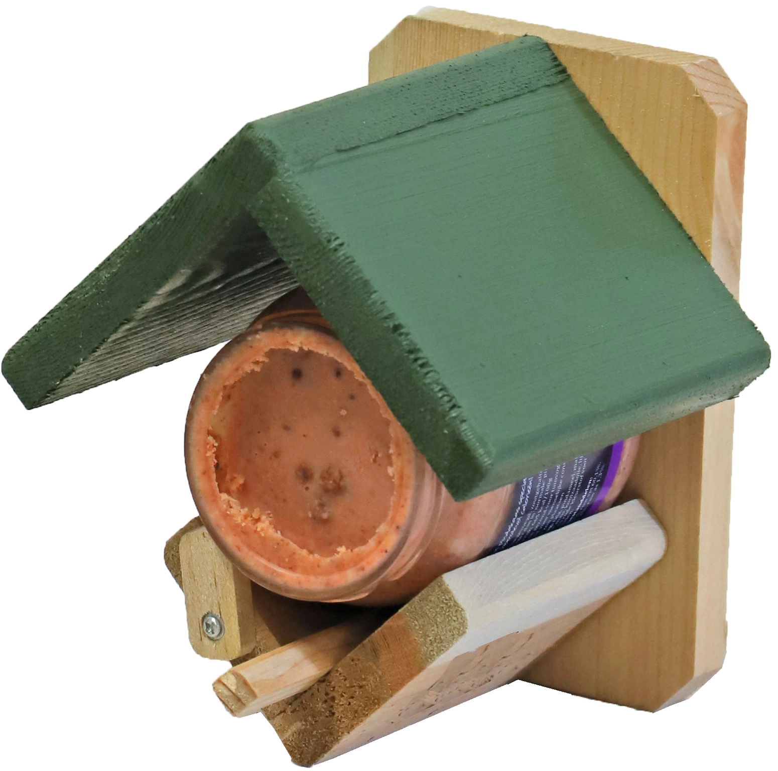 Deze praktische houten pindakaaspothouder maakt het voeren van tuinvogels met vogelpindakaas heel eenvoudig. Hang de houder aan een muur, boom of schutting en schuif een pot vogelpindakaas (zonder deksel) onder het dakje. Zo biedt u vogels een veilige en aantrekkelijke voederplek, waar ze graag zullen komen eten. Met deze houder kunt u gemakkelijk bijdragen aan de energiebehoefte van vogels, vooral tijdens de koudere maanden.