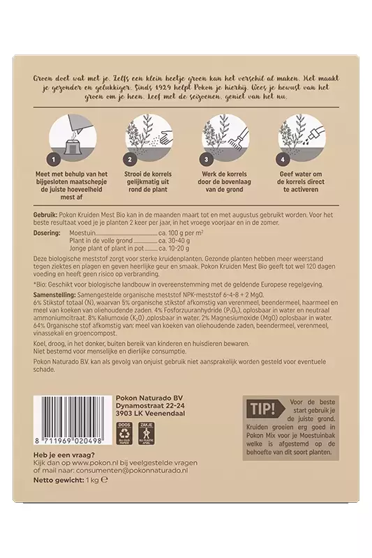 Schrijf zelf een recensie over "Pokon Bio Kruiden Mest 1kg"