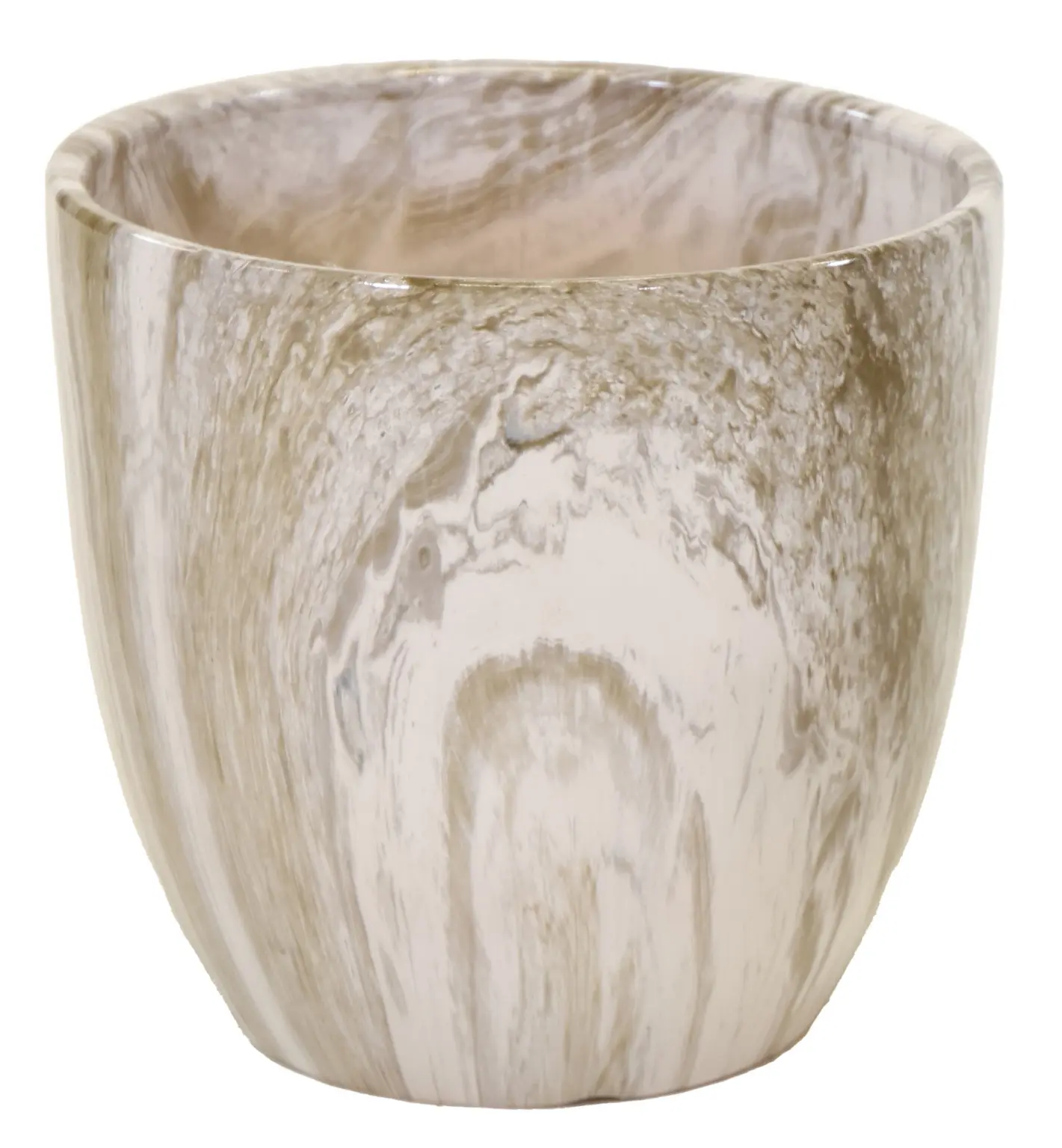 De grijze Emperor Egg bloempot van Mega Collections is een elegante keramische plantenpot met een moderne eivorm die direct een verfijnde sfeer aan je interieur toevoegt. De subtiele marmerlook en glanzende afwerking geven deze pot een luxe uitstraling, terwijl de neutrale grijstint ervoor zorgt dat de pot goed combineert met verschillende woonstijlen, van Scandinavisch minimalistisch tot klassiek en warm. Dankzij het hoge model is deze bloempot bijzonder geschikt voor middelgrote kamerplanten zoals hoge bladplanten, siergrassen of decoratieve takken, en vormt hij een krachtig groen accent op de vloer van je woonkamer, hal of kantoor. De pot is speciaal ontworpen voor gebruik binnenshuis en geeft jouw planten een stijlvolle basis om echt tot hun recht te komen. De hoogwaardige keramische constructie voelt stevig aan en is eenvoudig schoon te houden. Houd er rekening mee dat de bloempot geen afwateringsgat heeft; gebruik daarom een binnenpot of schotel om overtollig water op te vangen en meubels te beschermen.