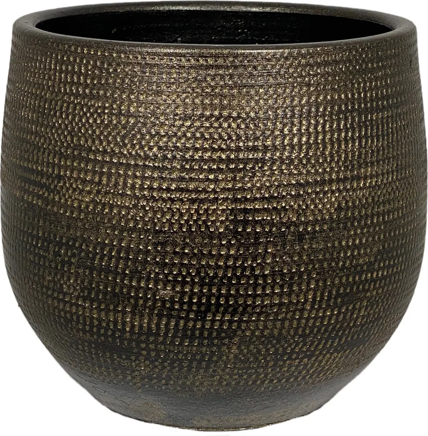 De HS Potterie bloempot Tokio in goud is een bolvormige keramische plantenpot die een verfijnde en warme sfeer aan je interieur geeft door de rijke metallic kleur en het subtiele ruitreliëf.