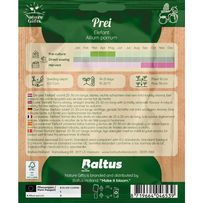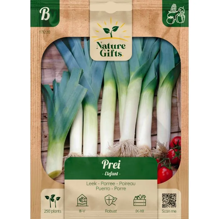 De prei olifant is een klassiek herfst ras dat bekendstaat om zijn lange, sterke, rechte schachten met een mild kruidig aroma.