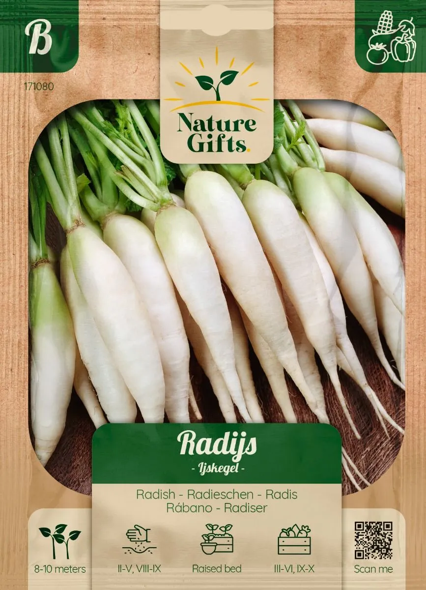 De radijs ijspegel is een unieke variëteit die opvalt door zijn lange, slanke vorm die doet denken aan een ijspegel. Sappig en mild van smaak.