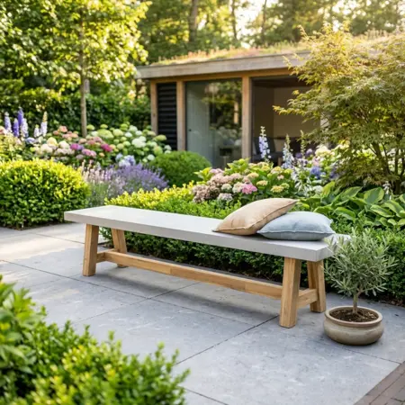 Met de Tuinbank Veltis Betonlook 250x40cm voeg je een stijlvolle en duurzame zitplek toe aan je tuin. Het unieke design, de hoogwaardige materialen en de mogelijkheid om de bank te combineren met de Veltis tuintafel maken het een uitstekende keuze voor elke tuinliefhebber. Bestel nu en geniet deze zomer van comfort en stijl in je eigen buitenruimte.