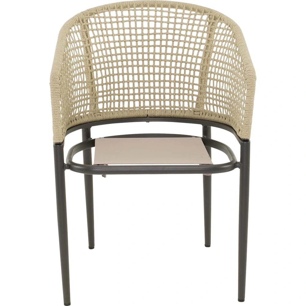 Stijlvolle en comfortabele tuinstoel met een mat antraciet aluminium frame, beige rope-afwerking en een weerbestendig olefin kussen voor optimaal zitcomfort.