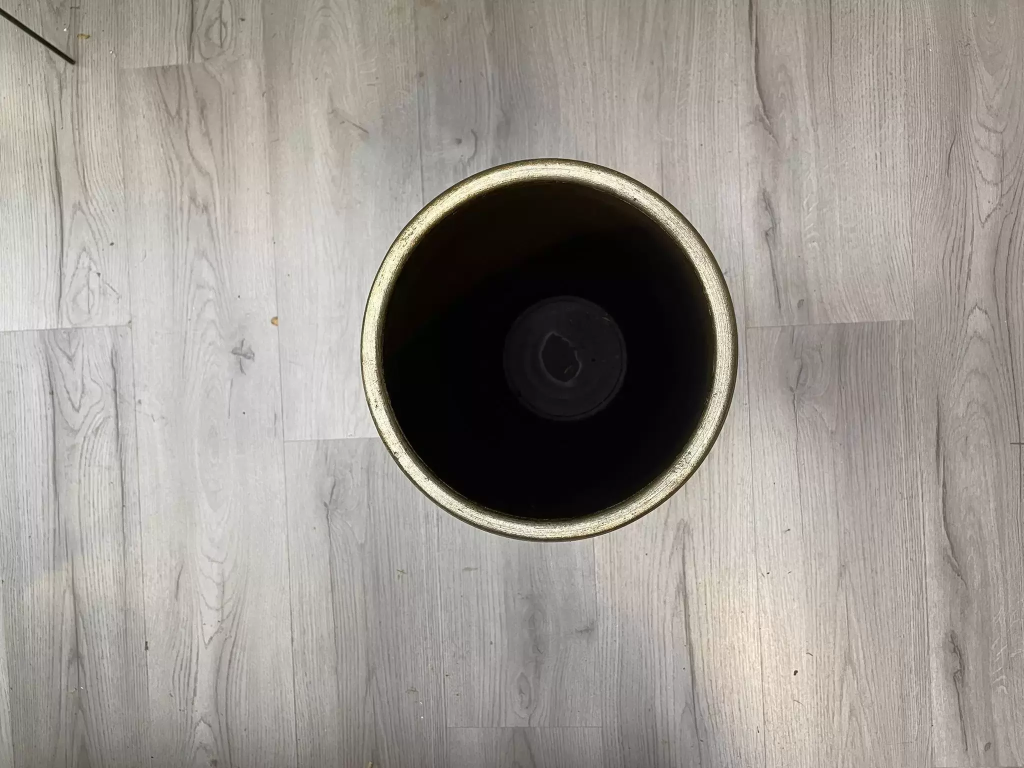 Grote gouden vaas Mira van keramiek met industrieel marmeraccent, perfect voor hoge planten of als opvallend interieurobject binnenshuis.