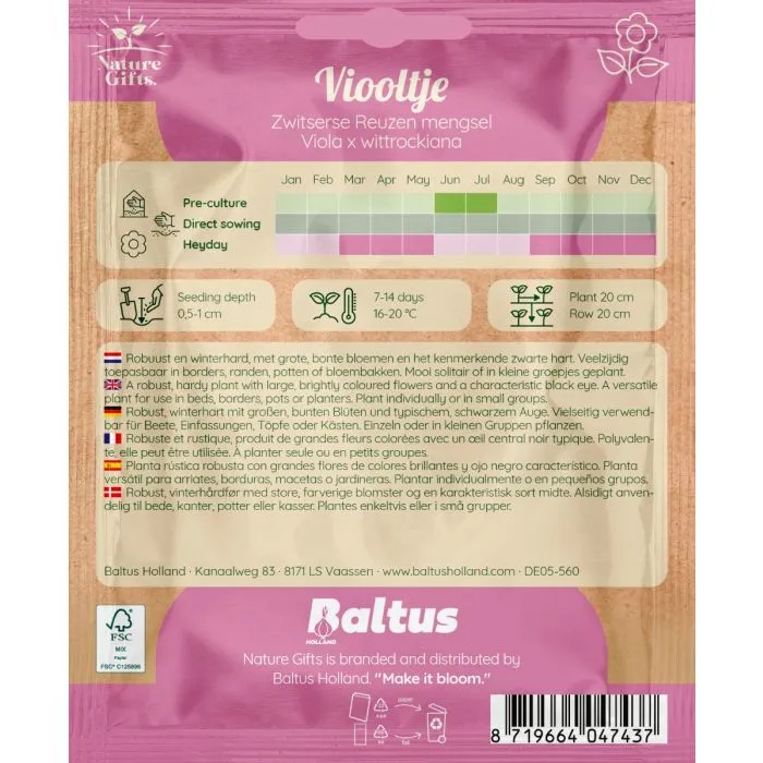 We zijn onwijs benieuwd naar uw mening over Viooltje zwitserse reuzen mengsel 60st. Help anderen en laat ze weten hoe het product bijvoorbeeld in gebruik is of staat in uw interieur. We maken elke maand via onze socials een winnaar bekend onder de klanten die een recensie hebben geplaatst. De winnaar wint €25 shop tegoed bij Toptuincentrum.nl