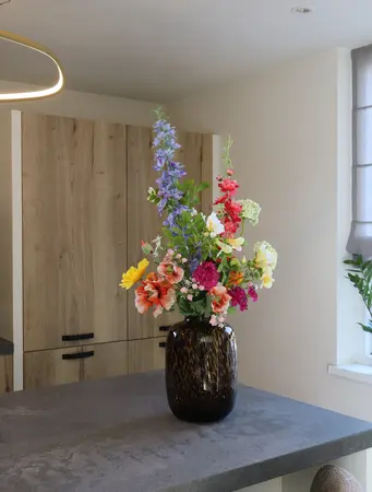Dankzij de realistische uitstraling van onze hoogwaardige kunstbloemen (die net echt lijken!) is Voorjaars Vibes niet alleen een stijlvolle blikvanger, maar ook een onderhoudsvrije favoriet. Perfect voor de woonkamer, hal of als cadeau dat lang meegaat.