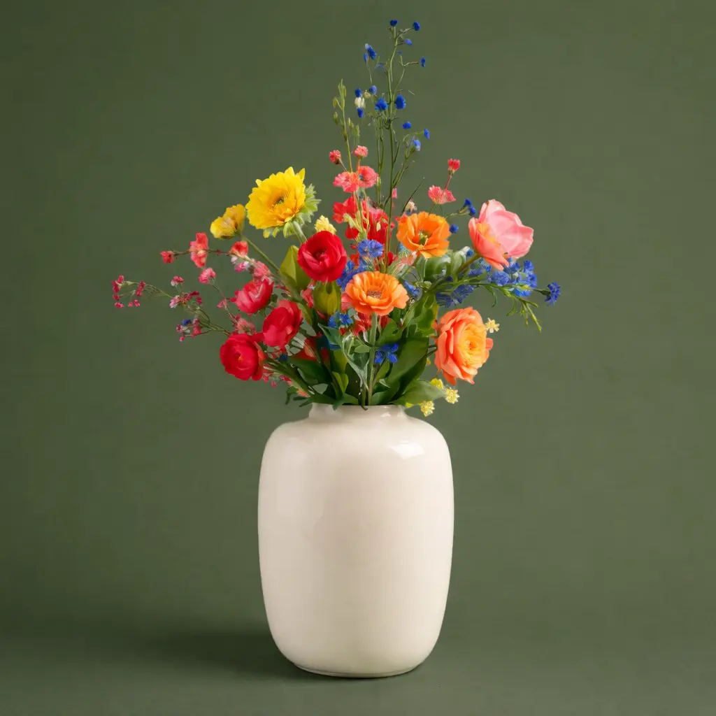 Onze zorgvuldig samengestelde kunstbloemen zien er niet alleen levensecht uit, maar ze behouden ook hun schoonheid het hele jaar door, zonder dat je je zorgen hoeft te maken over verwelking of onderhoud. Elk detail van dit boeket is met zorg ontworpen, van de zachte textuur van de bloemblaadjes tot de natuurgetrouwe kleuren.