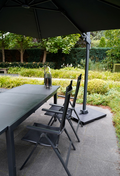Grootte en vorm: Het is essentieel om de juiste grootte en vorm van de parasol te kiezen om voldoende schaduw te bieden voor jou en je gezelschap. Ga de afmetingen van je buitenruimte na en kies een parasol die hierbij past. Of je nu gaat voor een rechthoekige, ronde, vierkante of ovale vorm, zorg ervoor dat deze goed past bij de indeling van je terras of tuin.